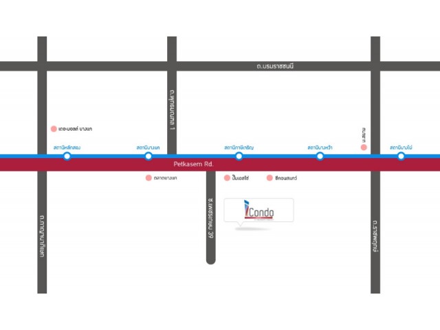 เดินทางสะดวกใกล้แหล่งชุมชน ธนาคารออมสินโรงพยาบาลเพชรเกษม2 ห้างสรรพสินค้าซีคอนบางแค โลตัสบางแค ตลาดบางแค มหาวิทยาลัยสยาม ใกล้รถไฟฟ้า BTS