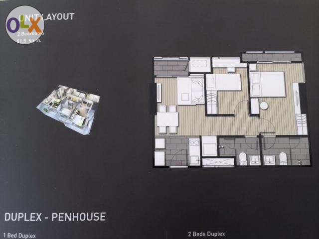 51.5 ตรม. 2 ห้องนอน 2 ห้องน้ำ 1 ห้องนั่งเล่น